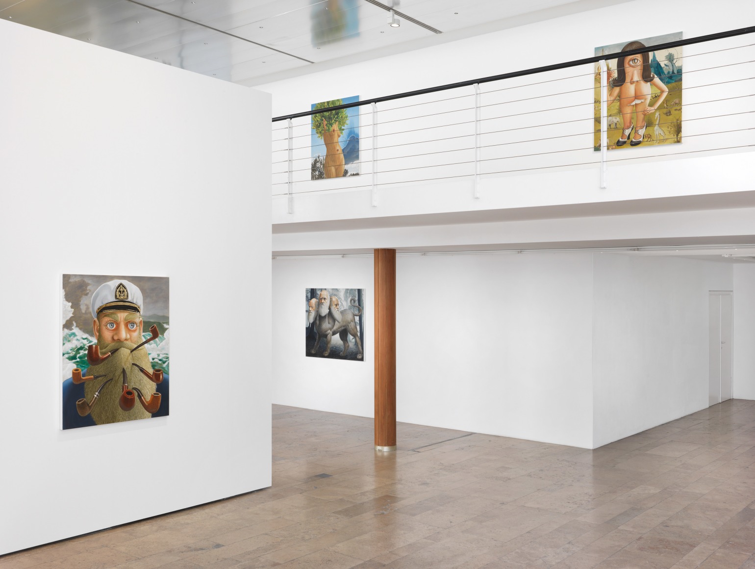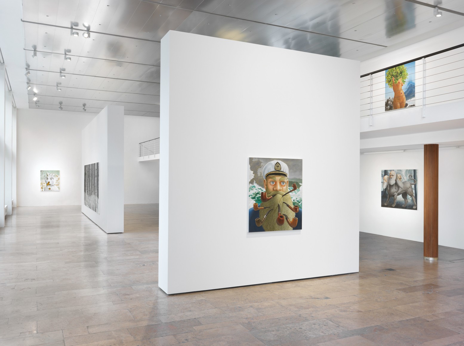 Long-standing central themes in Landers' oeuvre are embodied in the paintings, each depicting a lone character. Captain Homer (Seven Pipes for Seven Seas) presents an allegory for the journey through life as a circumnavigation of the globe. For decades Landers has used the device of a lone sailor on the seas as a stand-in for himself and his stream-of-conscience—the guiding force of his art-making.