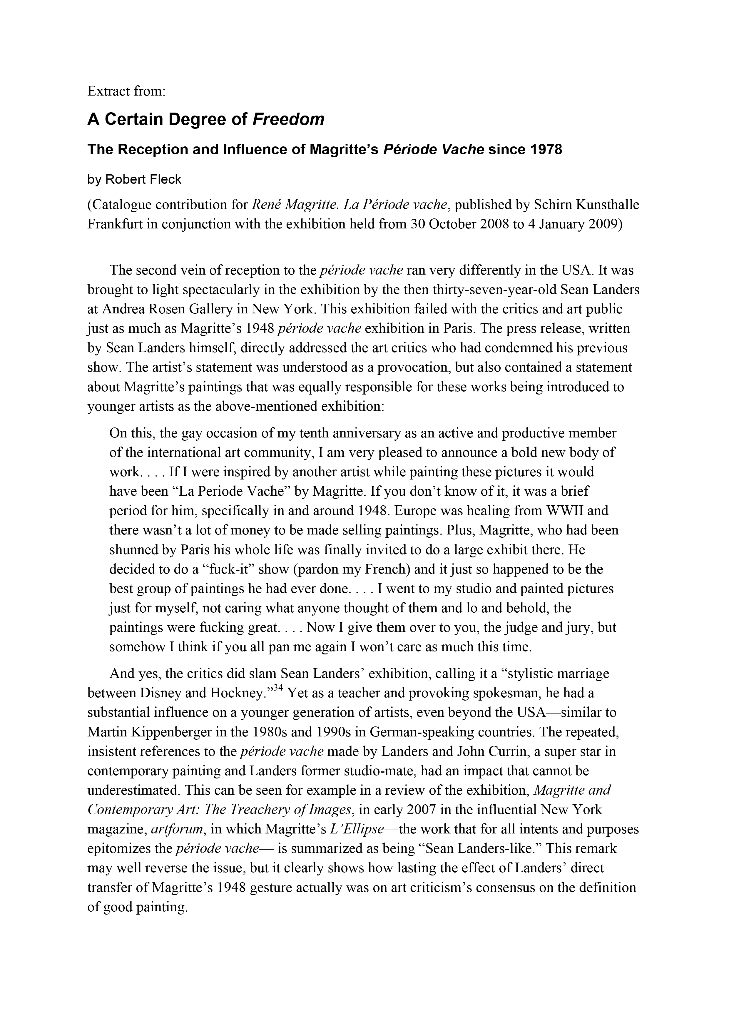 Catalogue text excerpt from René Magritte. La Période Vache, 2008.
